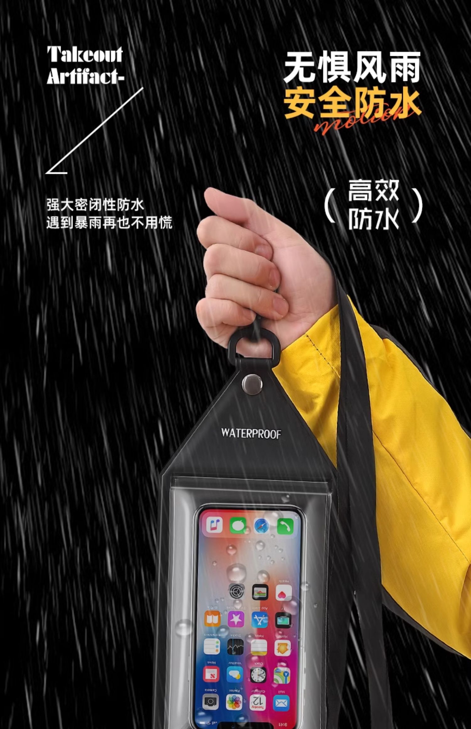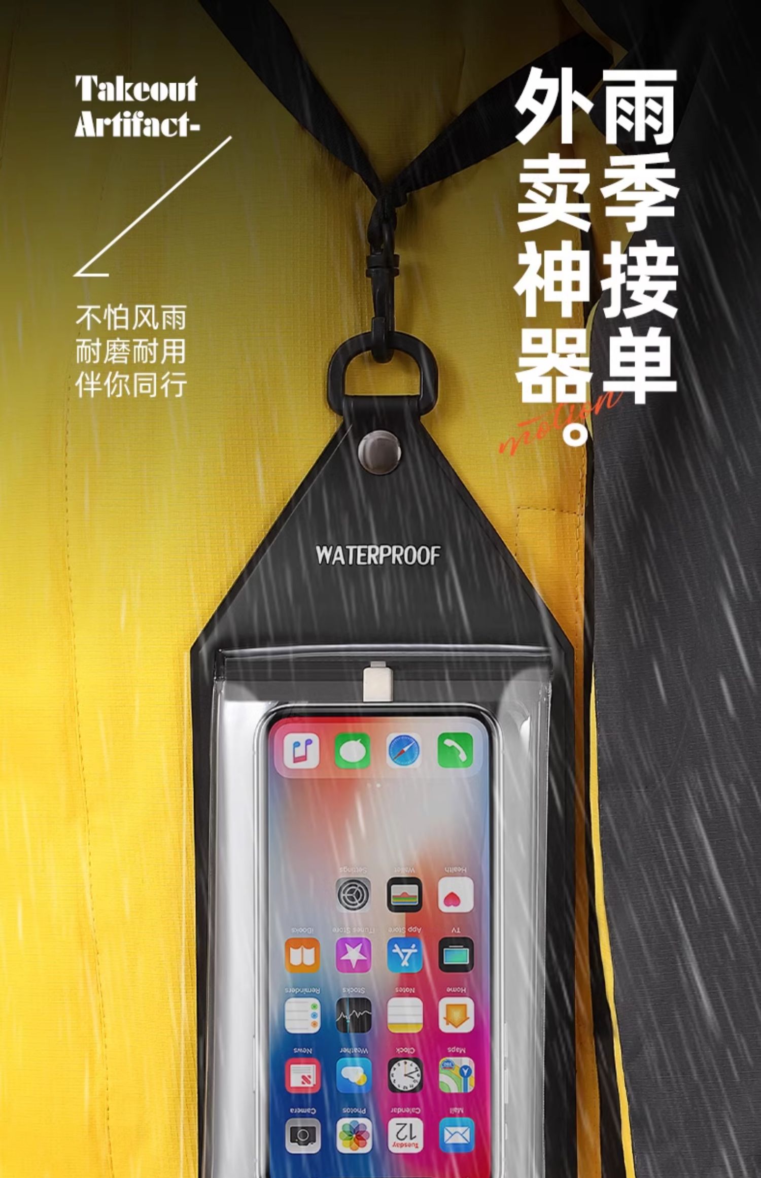 骑手装备双口袋手机防水袋外卖专用可触屏拍照充电防大暴雨大容量